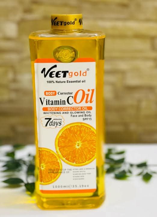 Veet Gold Vitamin C Body Corrector Oil is designed to even out skin tone, reduce dark spots and impart a glowing appearance. It combines vitamin C with moisturizing oils for skin nourishment. The product is meant for use on both face and body and is suitable for regular application. Visible improvements in glow and evenness may occur within a few days of consistent use.